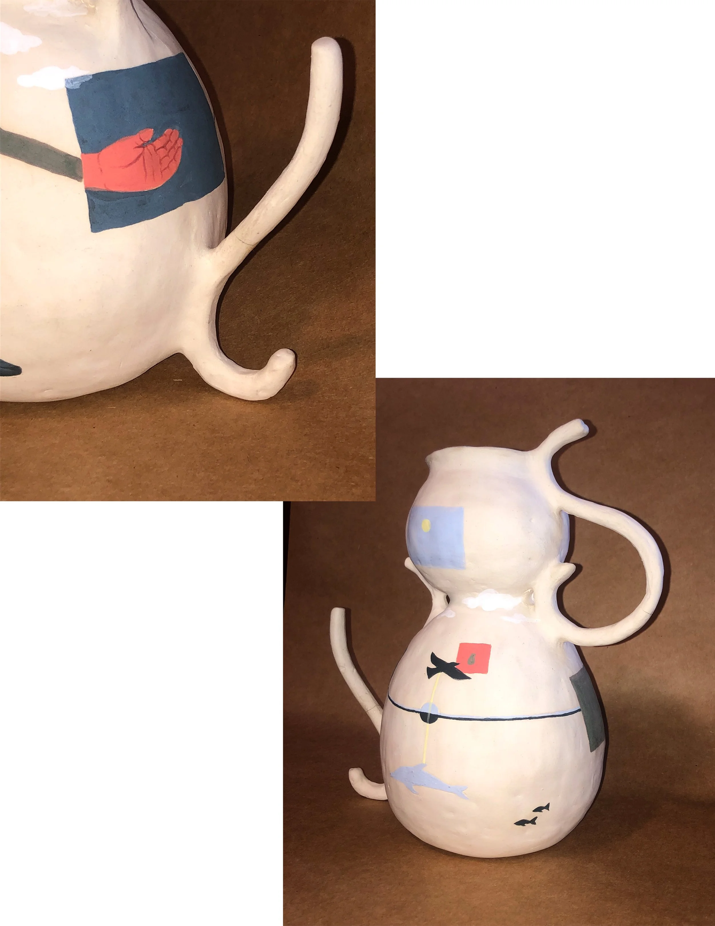 A body of vessels hand built at home during the lockdown months of Covid pandemic. These vessels built to hold and contain the many experiences and feelings of living through a global pandemic. Containers to hold grief, confusion, isolation, and critiques of a failing empire.