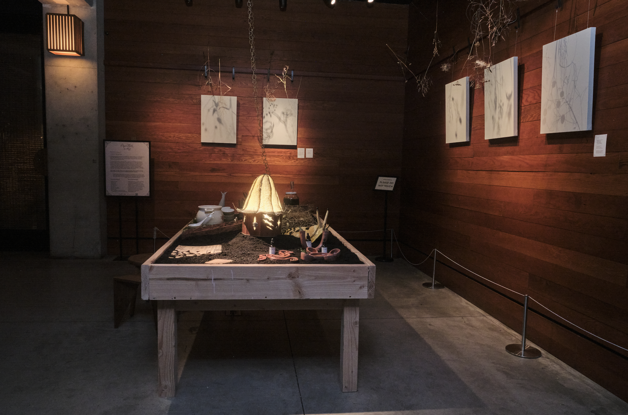 Each altar offers a space for reverence and quiet connection through three temporal states of the plant: the essence (its memory), the seeds (its future), and the plant in decay (its present). Viewers are invited to engage with the essences and to create their own moment of communion with each plant.